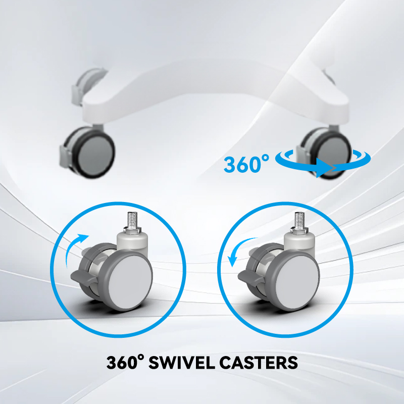 Likaymo medical carts feature premium locking casters engineered for uncompromising stability during clinical procedures. The wheels roll silently and smoothly across all floor types, delivering effortless maneuverability that never disrupts patient care or workflow. The intuitive, one-touch brake system locks the cart firmly in position, elevating safety and precision in every clinical setting. Built to balance seamless mobility and rock-solid reliability, these casters embody Likaymo’s dedication to quiet, efficient, and secure medical operations.