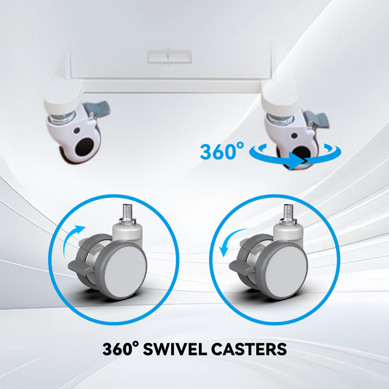 Das 3-lagige Tablettsystem bietet eine gestufte Lagerung für maximale vertikale Raumeffizienz. Jedes ausziehbare Tablett bietet unabhängigen, problemlosen Zugriff auf die Vorräte und sorgt gleichzeitig für Ordnung und Übersichtlichkeit. Dank verstärkter Rahmen und leicht zu reinigender Oberflächen unterstützt es eine hohe Arbeitseffizienz in medizinischen, industriellen und Laborumgebungen.