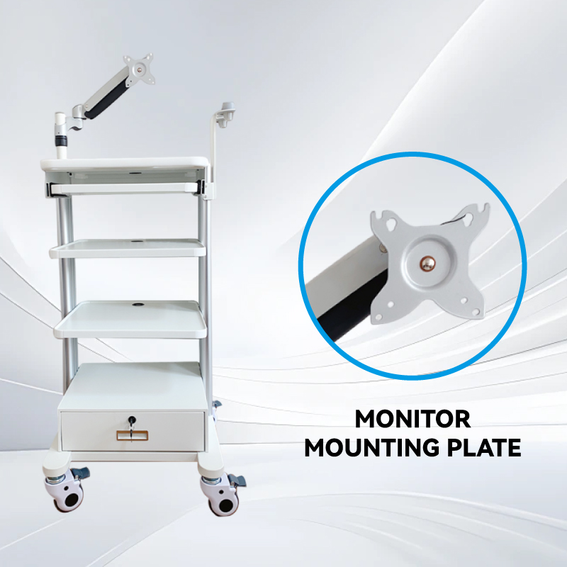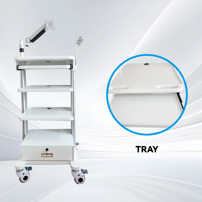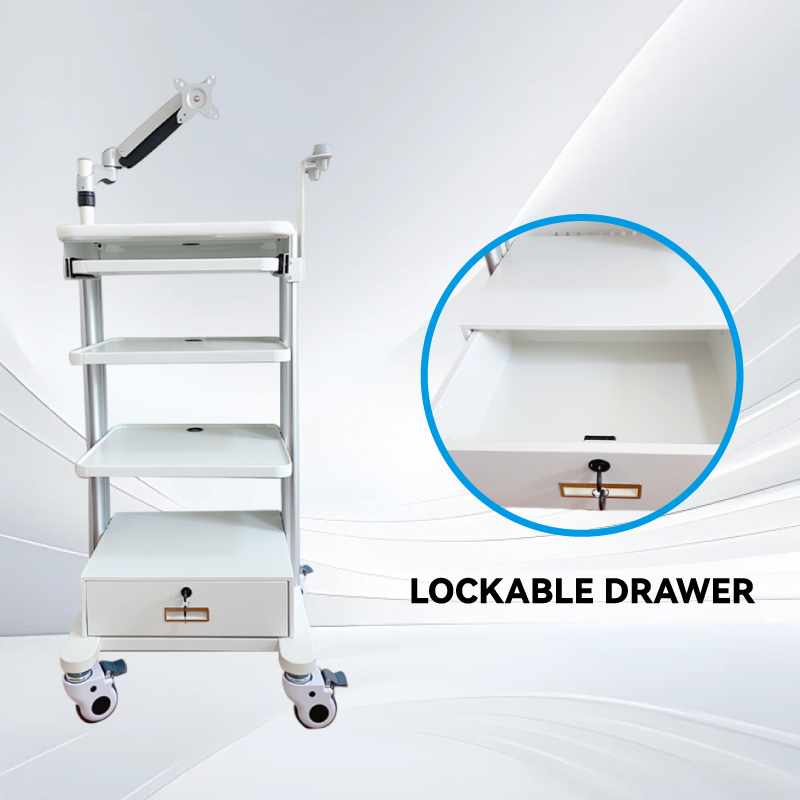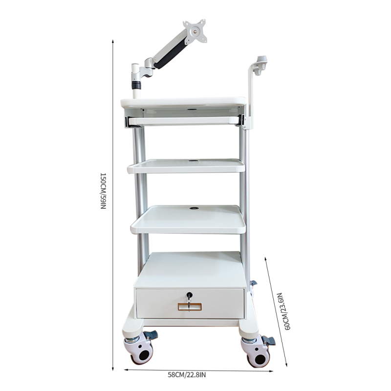 Endoskopwagen mit 3-lagigen Tabletts, Schubladen und Gasliftarm