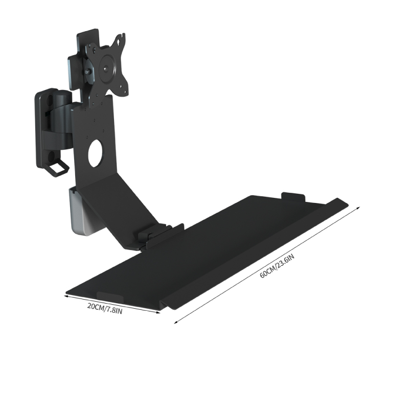 Robuster Monitorarm zur Wandmontage mit Tastaturablage