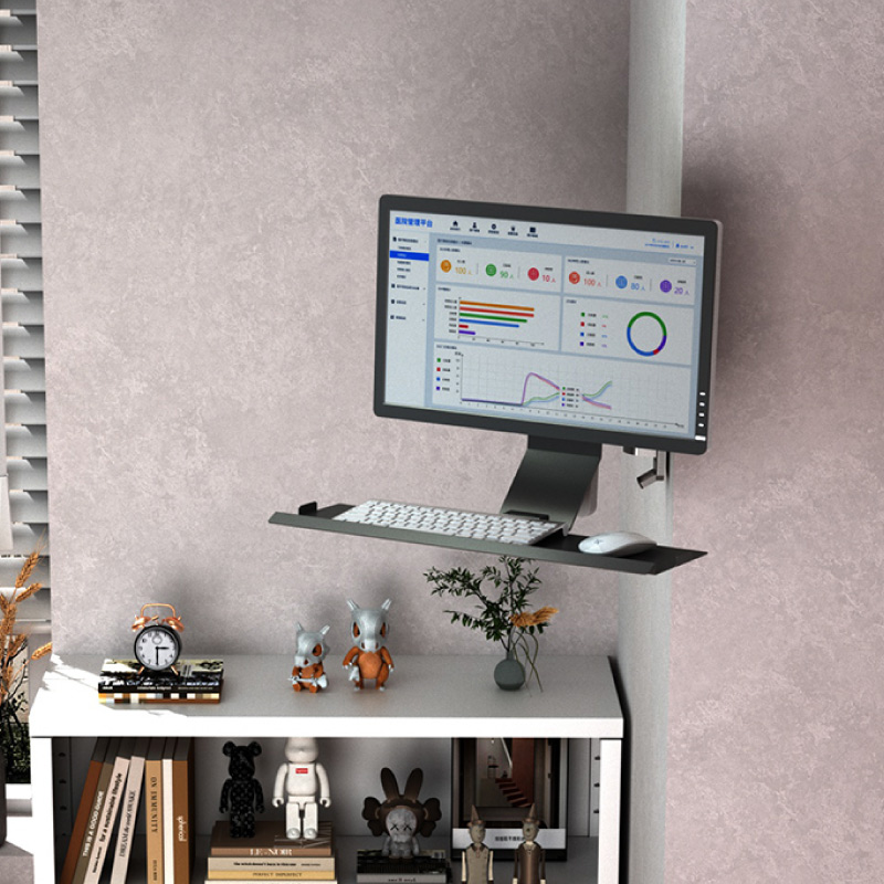 Diese robuste Tastaturablage ist ein nahtlos integrierter Bestandteil des Wandmontagesystems. Sie besteht aus robustem, mattschwarzem Metall und verfügt über ein flaches, rechteckiges Design, das sich dank eines stabilen Scharniermechanismus mühelos aus- und einfahren lässt. Ihre Hauptfunktion besteht darin, Ihre Tastatur ergonomisch zu positionieren und so wertvollen Platz auf dem Schreibtisch zu sparen, da sie nicht mehr auf der Arbeitsfläche platziert werden muss. Die Ablage ist so konstruiert, dass sie Tastaturen in Standardgröße sicher hält und so eine geordnetere und bequemere Schreibhaltung ermöglicht. Durch die optimale Höhe und den optimalen Winkel der Tastatur zum Monitor werden Ihre Handgelenke, Schultern und Ihr Nacken bei langen Arbeitssitzungen entlastet. Damit ist sie ein unverzichtbares Zubehör für jeden effizienten Arbeitsplatz.