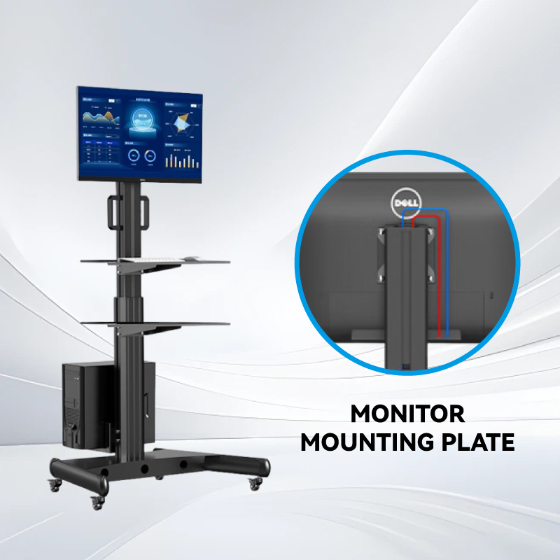 Mobiler Rundcomputerwagen mit CPU-Halterung und Tastaturablage