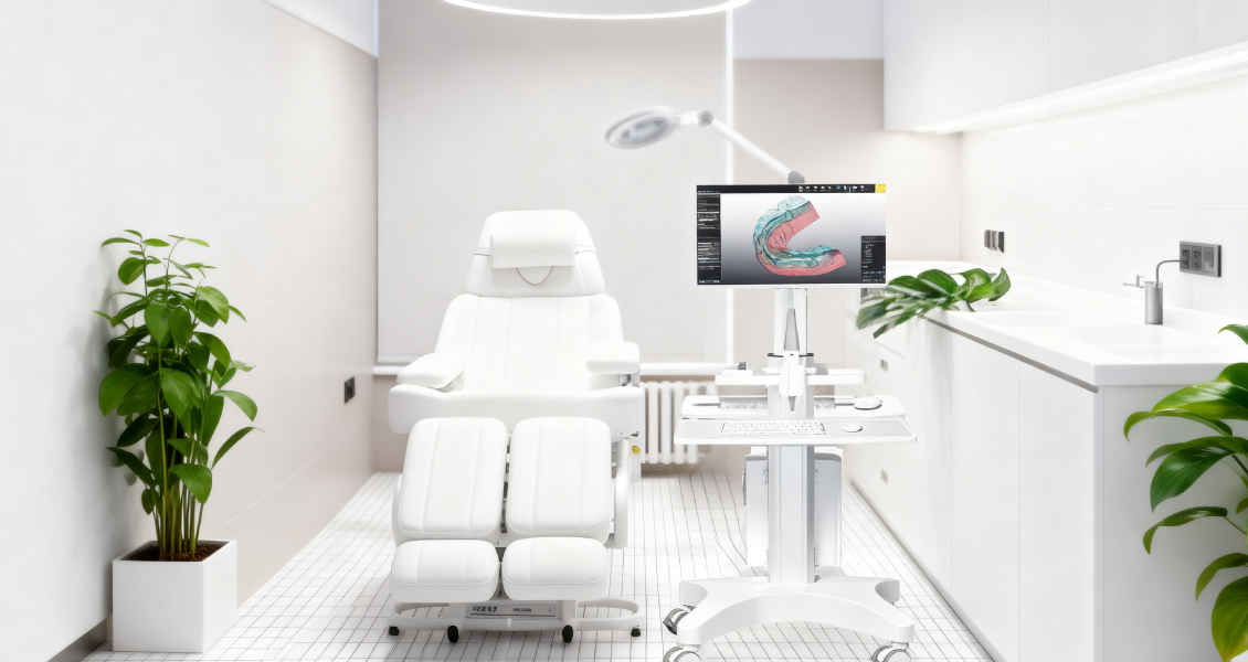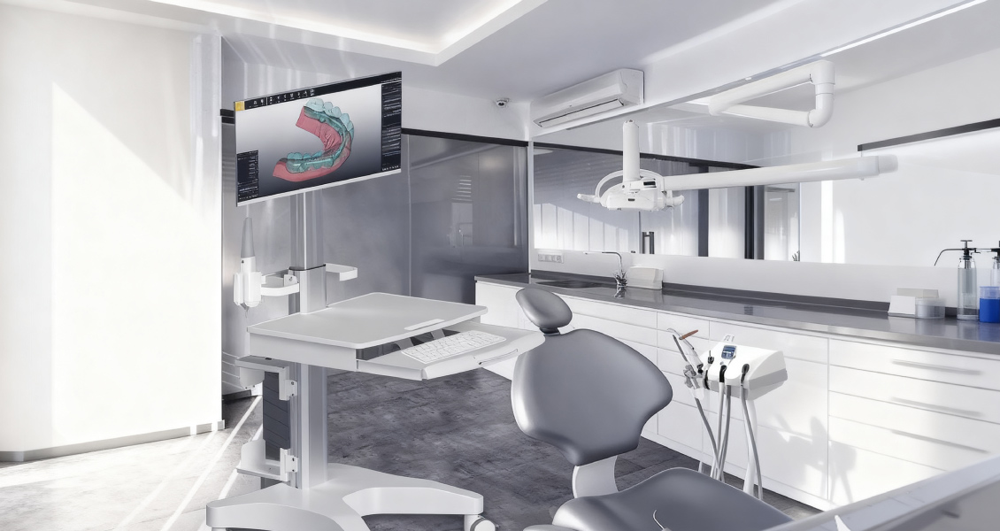 Mobiler Intraoral-Scanwagen mit verstellbarem Display