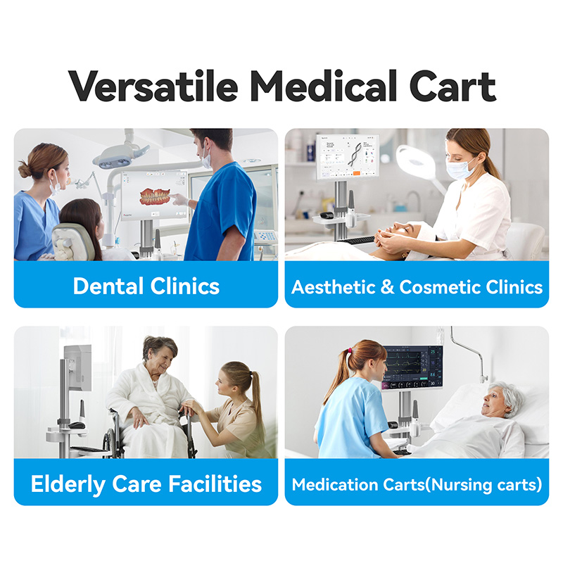 Mobiler Arbeitsplatz für medizinische Trolleys mit Monitorhalterung