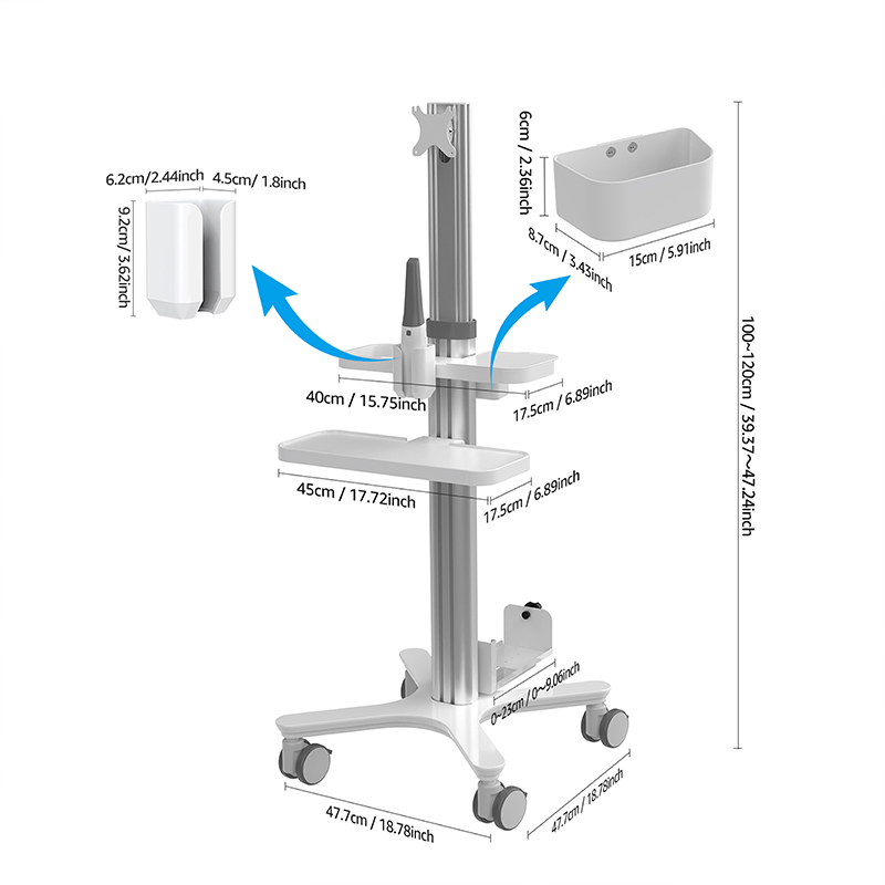 Dieses speziell für medizinische Wagen entwickelte Hochleistungs-Klemmgestell bietet eine sichere und geordnete Befestigung für Computer-Hosts und andere wichtige Verarbeitungseinheiten. Der verstärkte Klemmmechanismus sorgt für einen festen, vibrationsfesten Halt und verhindert so ein Verrutschen oder Lösen während des Transports und im täglichen Gebrauch. Die werkzeuglose Installation ermöglicht eine schnelle Einrichtung und einfache Anpassung und vereinfacht die Integration in unterschiedliche klinische Umgebungen. Durch die stabile Positionierung und Zugänglichkeit der Host-Geräte trägt es zur Maximierung der Arbeitsplatzeffizienz und Gerätesicherheit bei.