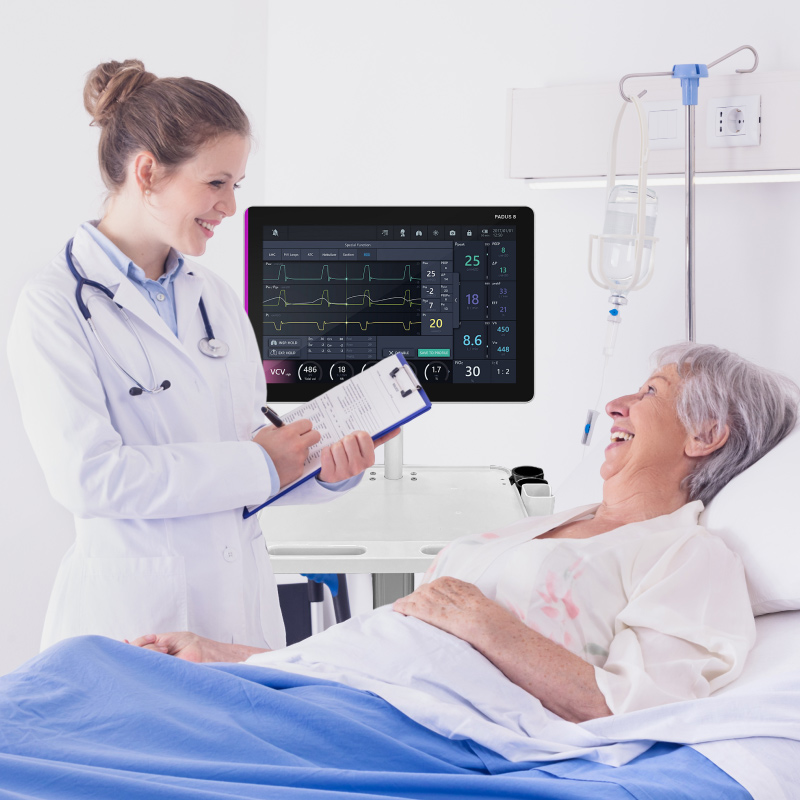 Hochwertiger mobiler medizinischer Wagen mit Monitorhalterung, höhenverstellbarer Pflegewagen für Krankenhaus und Klinik